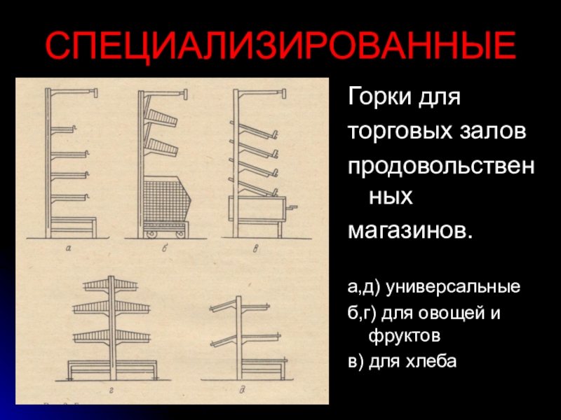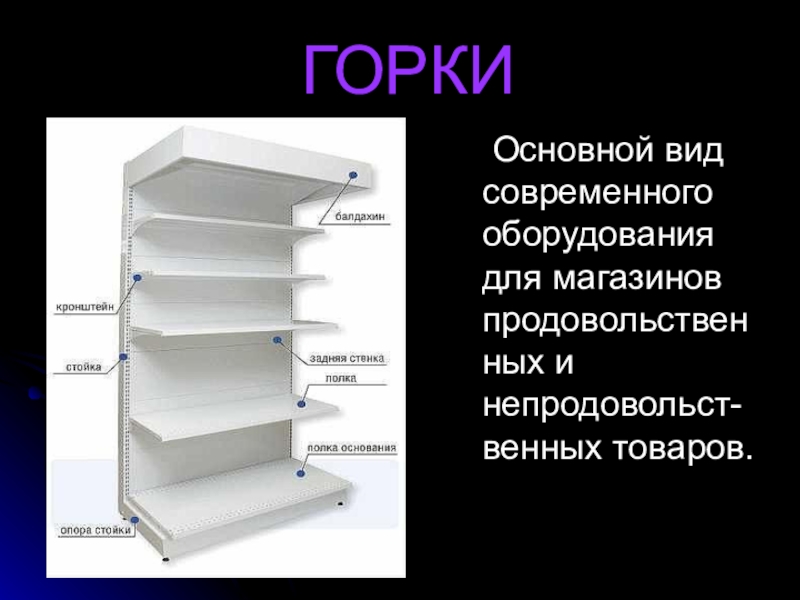 Слайд 35ГОРКИ ДЛЯ ТОРГОВЫХ ЗАЛОВ НЕПРОДОВОЛЬСТВЕННЫХ МАГАЗИНОВ