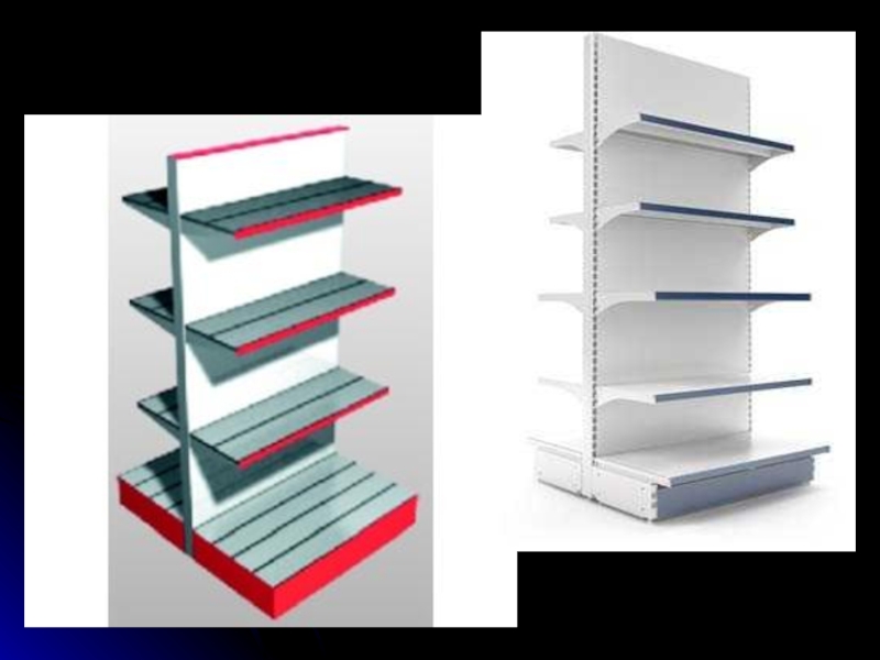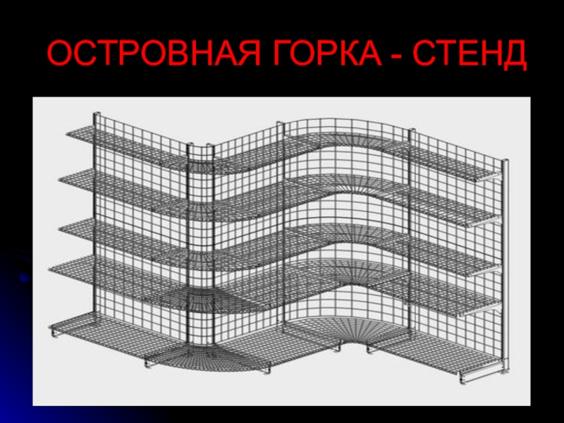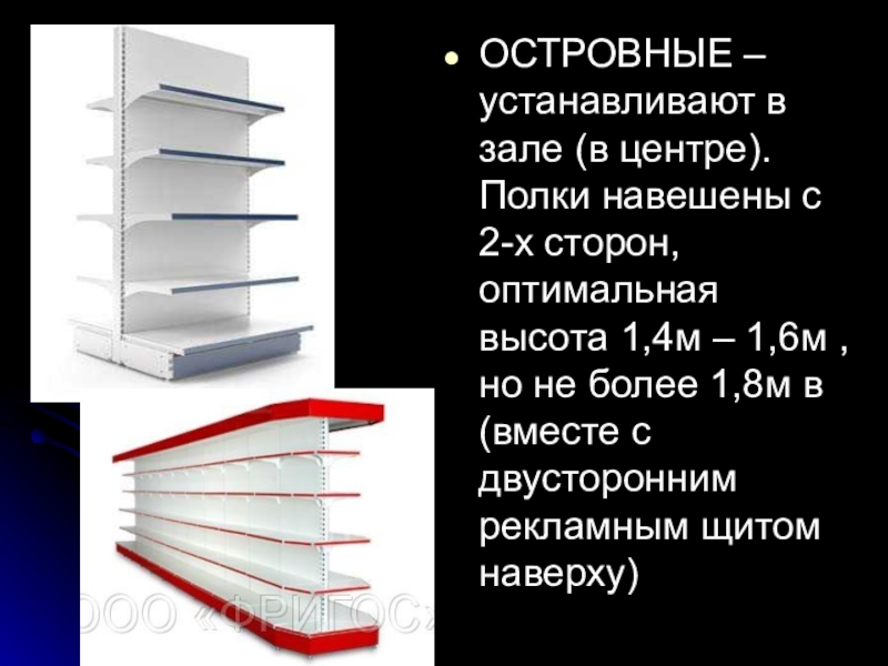 Слайд 23ОСТРОВНЫЕ – устанавливают в зале (в центре). Полки навешены с 2-х