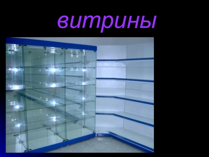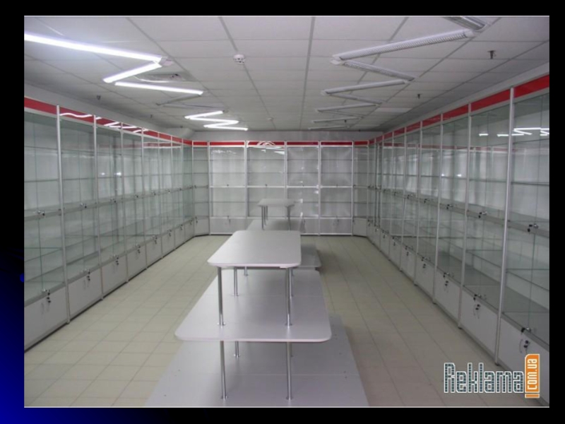 витрин ( на полки со стороны оконных витрин раскладывают товар – реклама). Высота, как у островных.