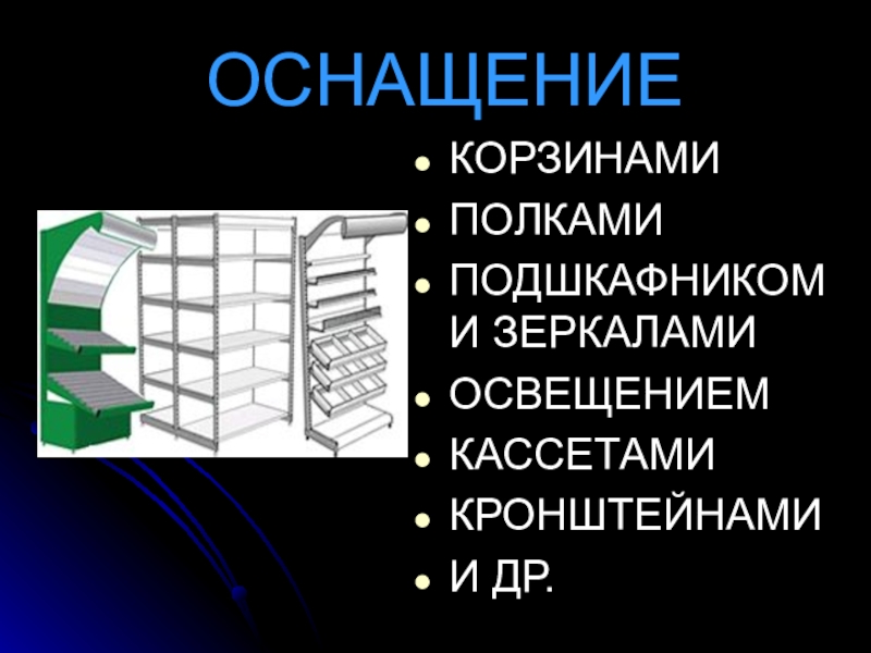 Основной вид современного оборудования для магазинов продовольственных и непродовольст-венных товаров.