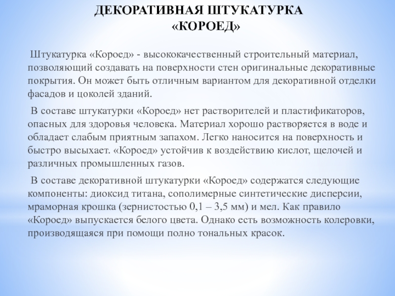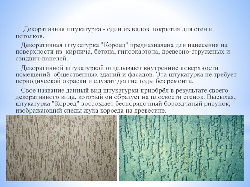 Слайд 3ДЕКОРАТИВНАЯ ШТУКАТУРКА «КОРОЕД»