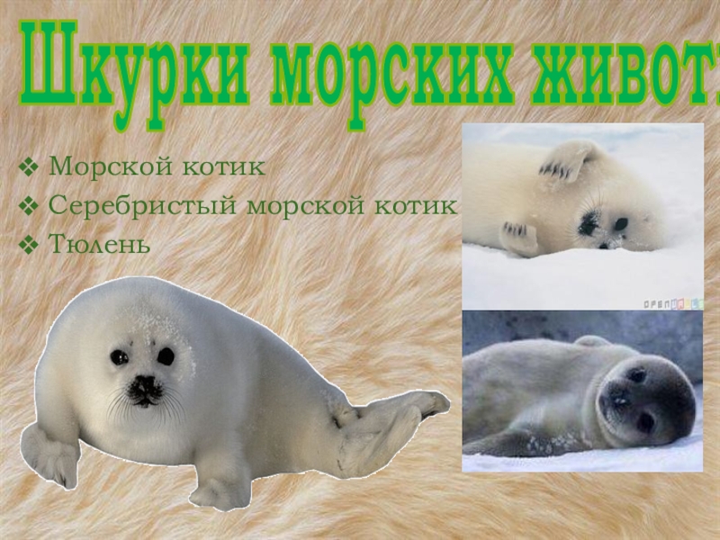 Шкурки морских животныхМорской котикСеребристый морской котик Тюлень