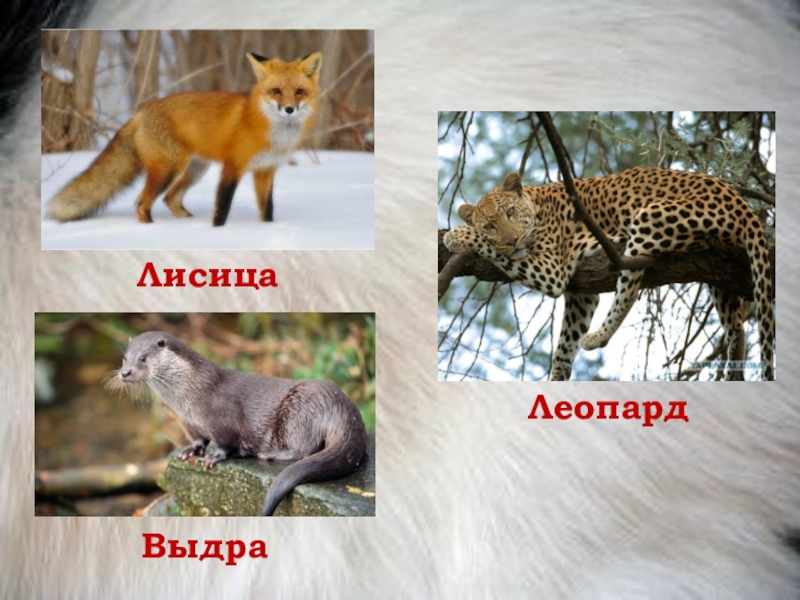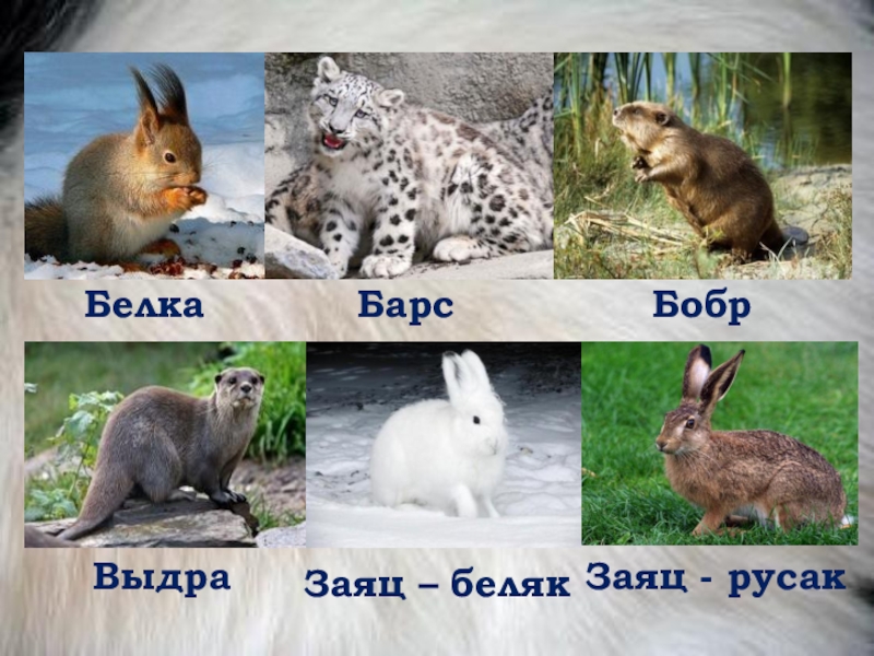 БелкаБарсВыдраБобрЗаяц - русакЗаяц – беляк