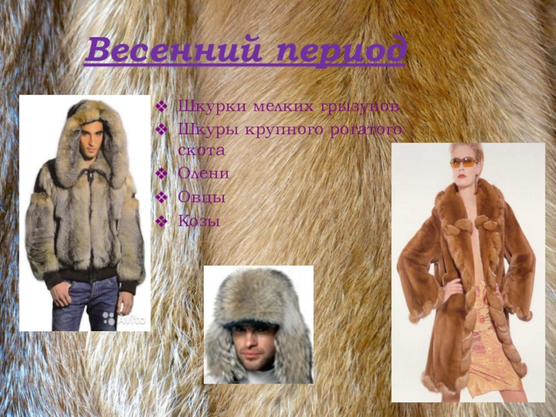 Весенний периодШкурки мелких грызуновШкуры крупного рогатого скота Олени ОвцыКозы