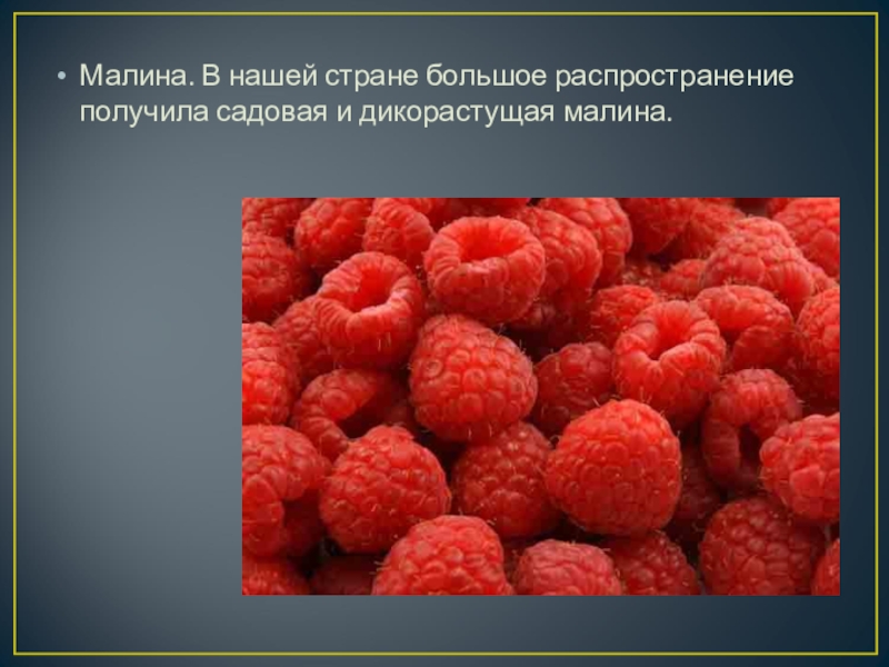 Малина. В нашей стране большое распространение получила садовая и дикорастущая малина.