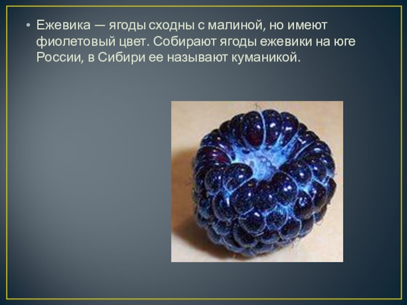 Ежевика — ягоды сходны с малиной, но имеют фиолетовый цвет. Собирают