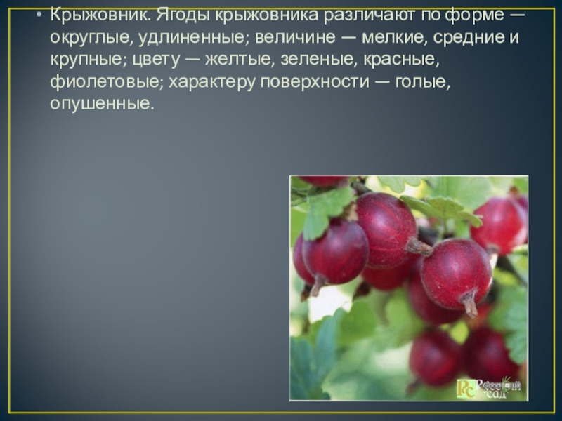 Крыжовник. Ягоды крыжовника различают по форме — округлые, удлиненные; величине —