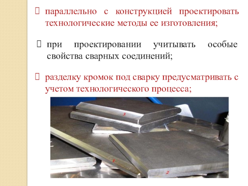 разделку кромок под сварку предусматривать с учетом технологического процесса;