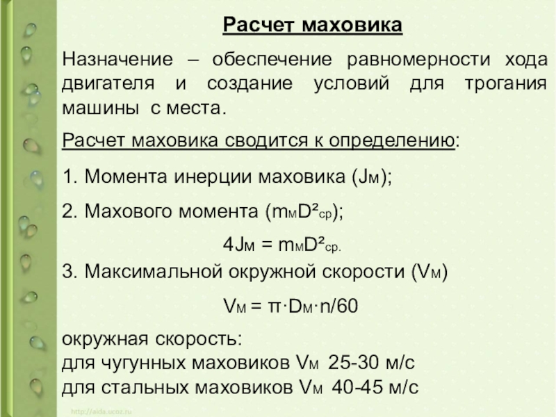 Назначение – обеспечение равномерности хода двигателя и создание условий