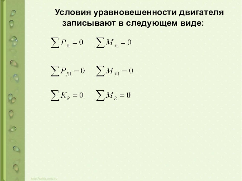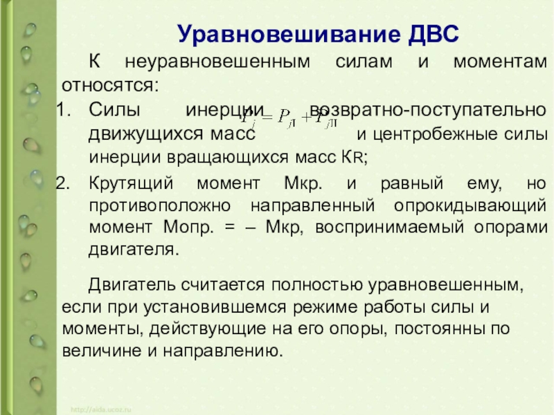 крутящий момент двигателя уравновешивается суммарным моментом сопротивления и моментом сил инерции всех движущихся масс.