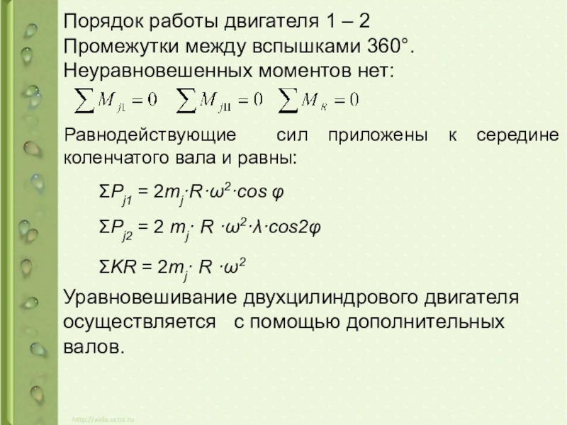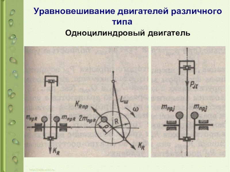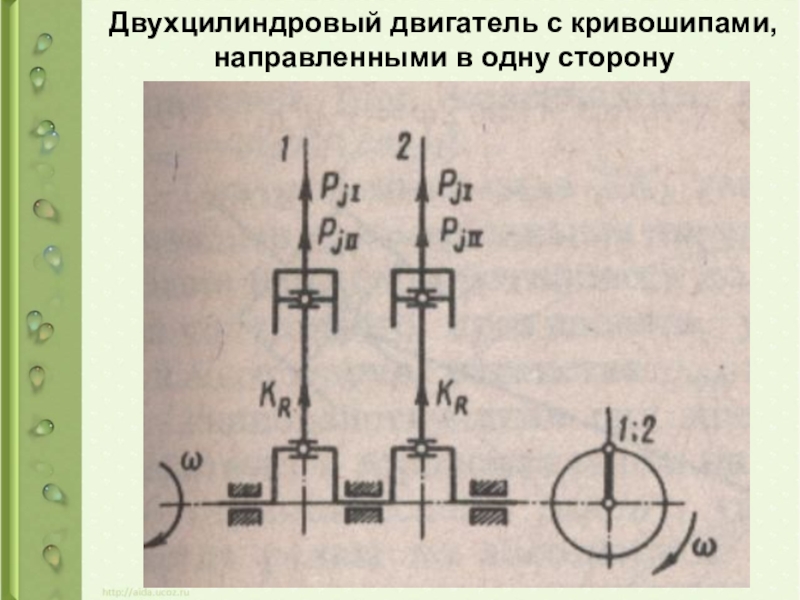 Слайд 29Двухцилиндровый двигатель с кривошипами, направленными в одну сторону