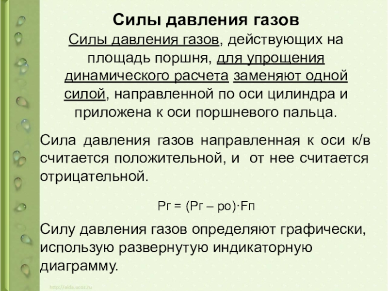 Сила давления газов направленная к оси к/в считается положительной, и от нее считается отрицательной.