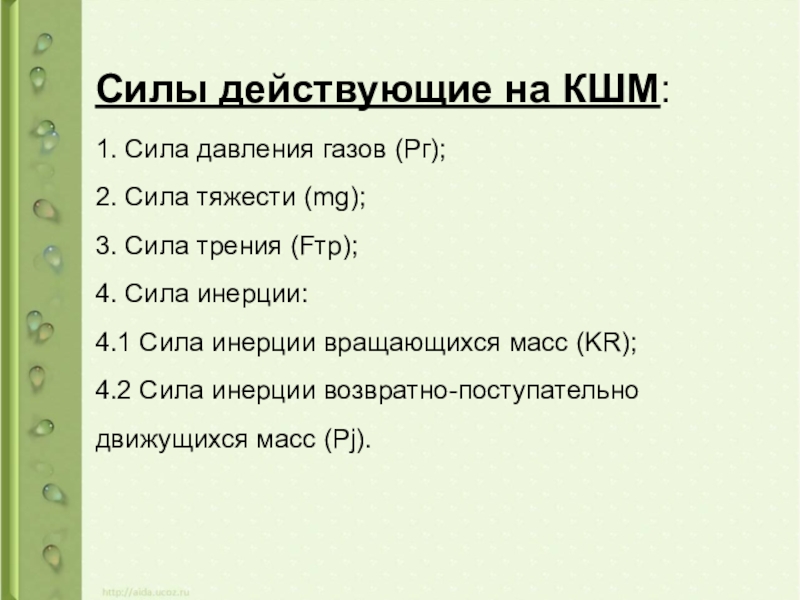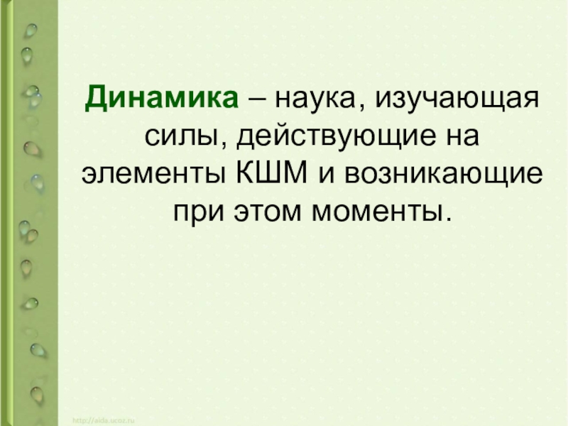 Слайд 2Динамика – наука, изучающая силы, действующие на элементы КШМ и возникающие