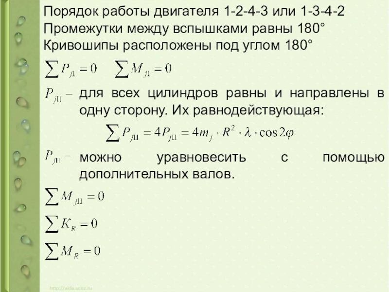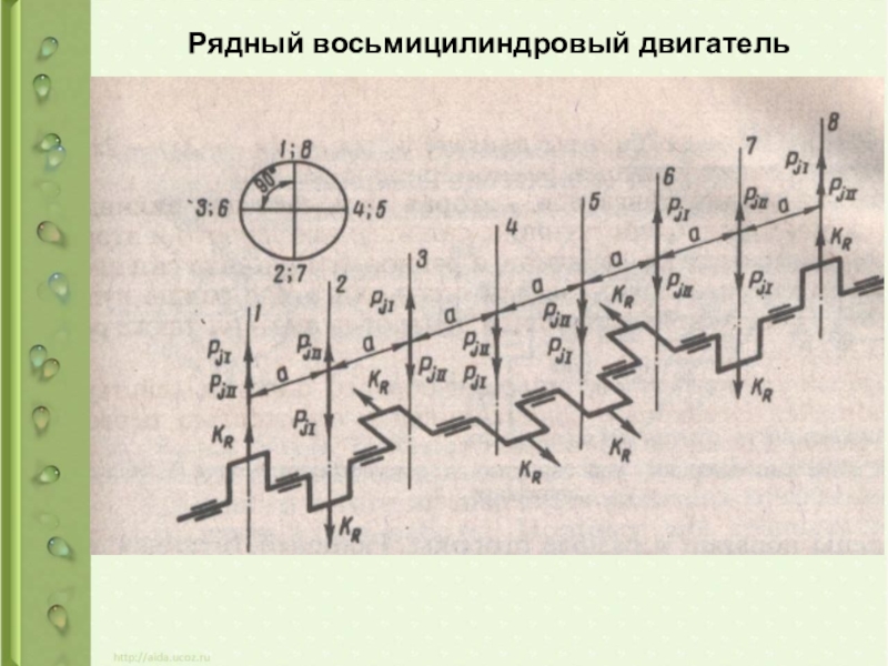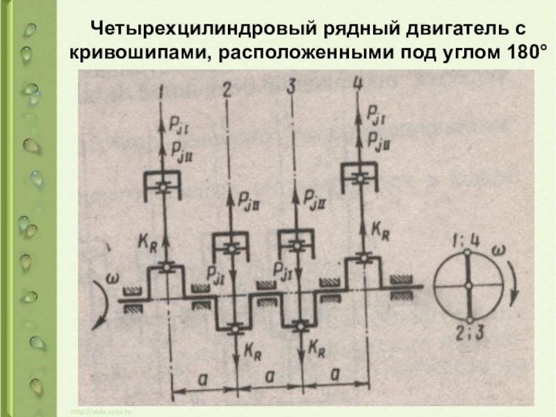 Слайд 33Четырехцилиндровый рядный двигатель с кривошипами, расположенными под углом 180°