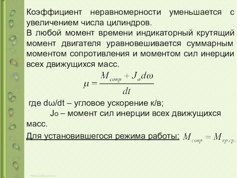 Слайд 46Коэффициент неравномерности уменьшается с увеличением числа цилиндров.