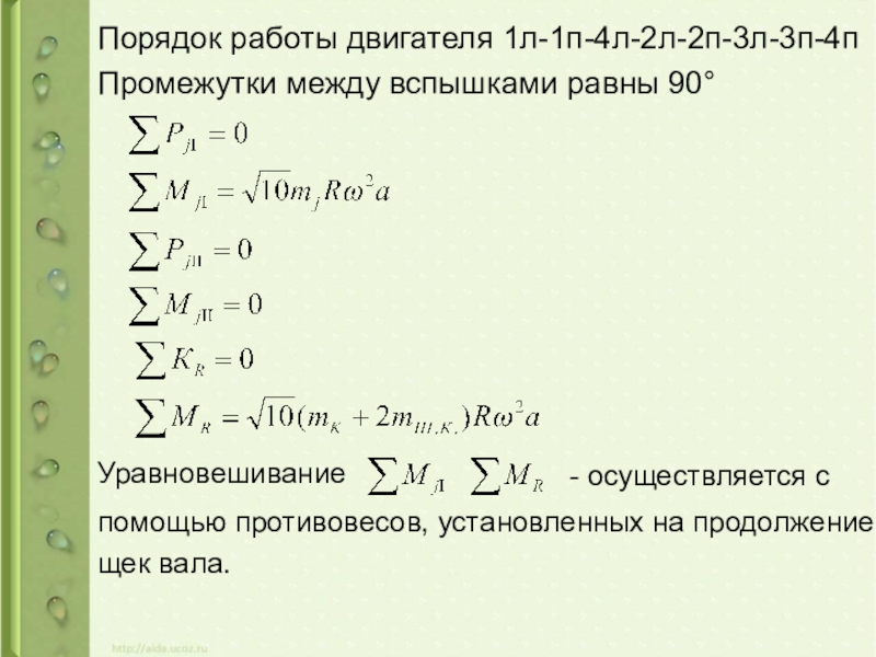 Слайд 44Порядок работы двигателя 1л-1п-4л-2л-2п-3л-3п-4п