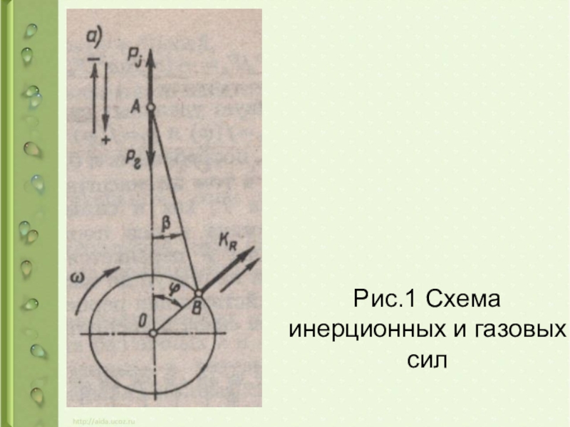 Слайд 71. Масса поршневой группы (mп) сосредоточена на оси поршневого пальца в
