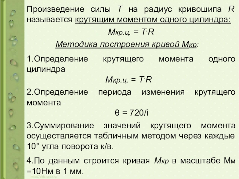 Слайд 19Произведение силы Т на радиус кривошипа R называется крутящим моментом
