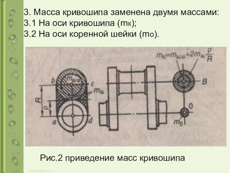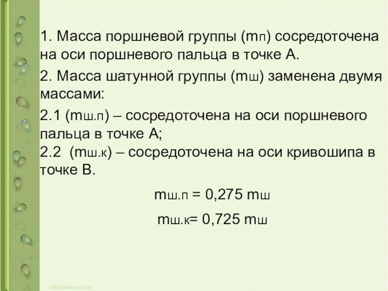 2. Масса шатунной группы (mш) заменена двумя массами: