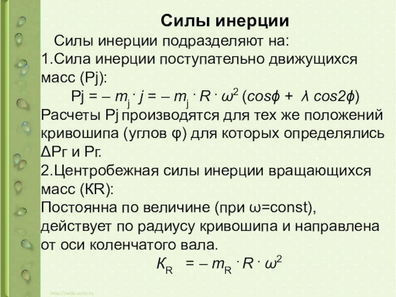 1. Силы инерции масс, движущихся возвратно-поступательно;