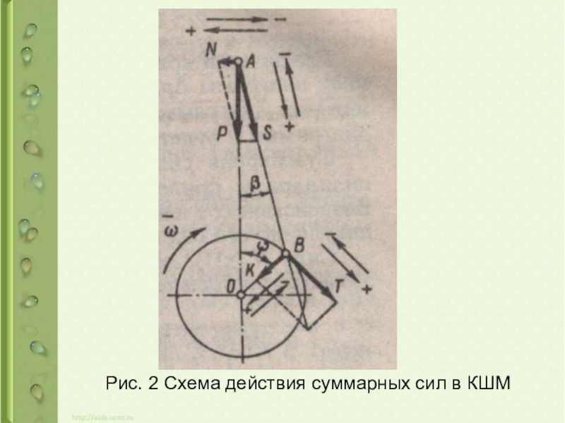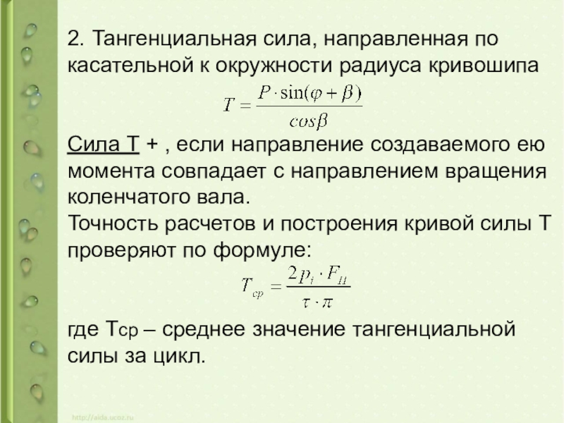 Слайд 172. Тангенциальная сила, направленная по касательной к окружности радиуса кривошипа