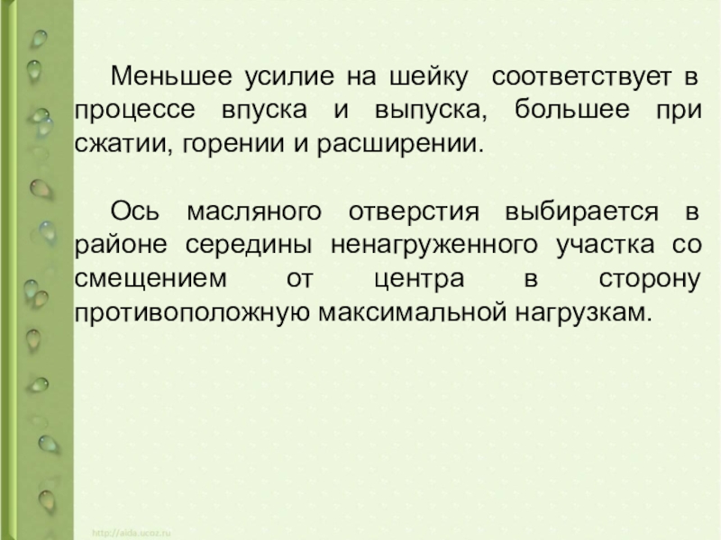 и наименьших нагрузок и износов, что необходимо для правильного выбора масляных отверстий.