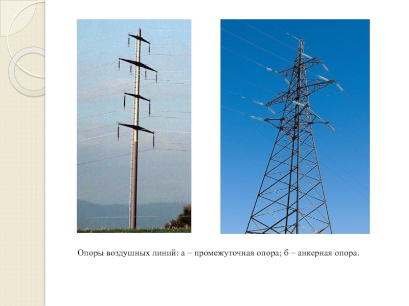 Слайд 8Опоры воздушных линий: а – промежуточная опора; б – анкерная опора.