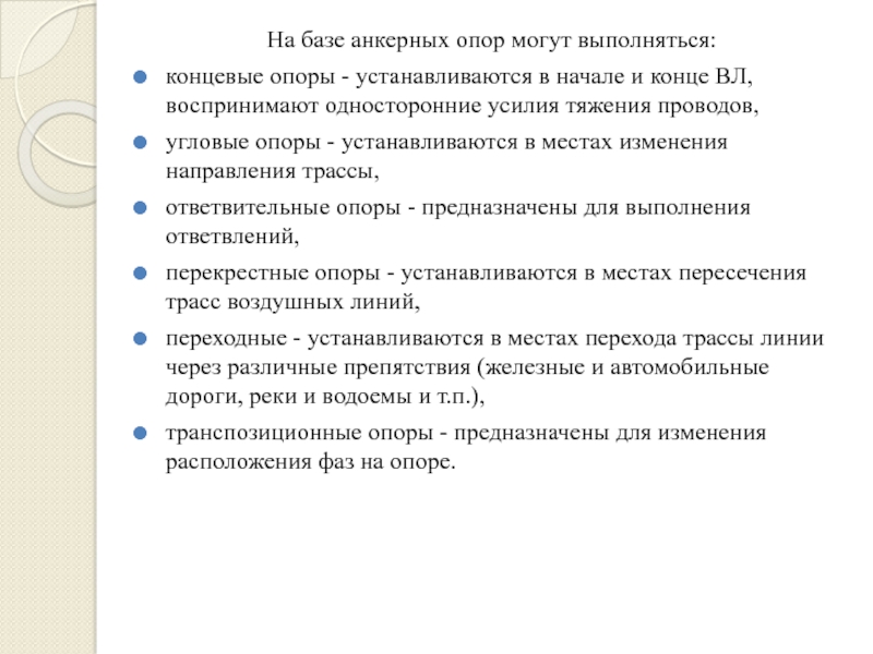 Слайд 9На базе анкерных опор могут выполняться: