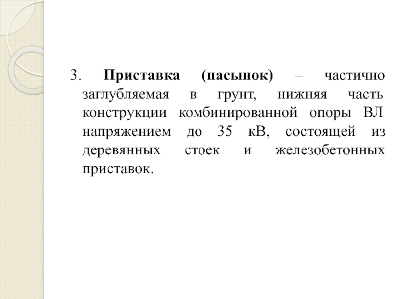 Слайд 263. Приставка (пасынок) – частично заглубляемая в грунт, нижняя часть конструкции