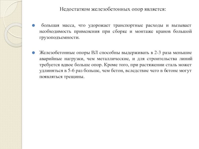 Слайд 17Недостатком железобетонных опор является: