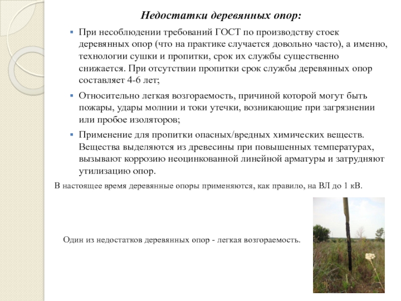Слайд 13Недостатки деревянных опор:
