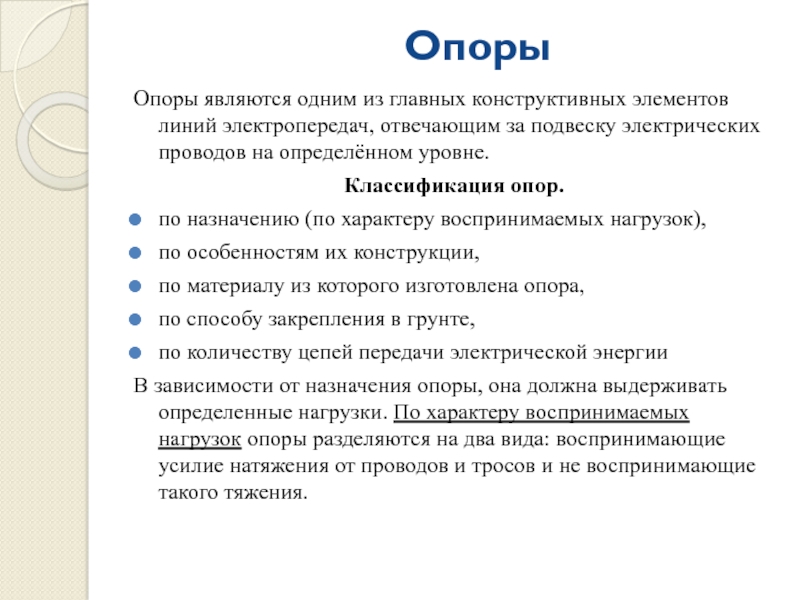Классификация опор.