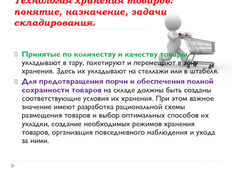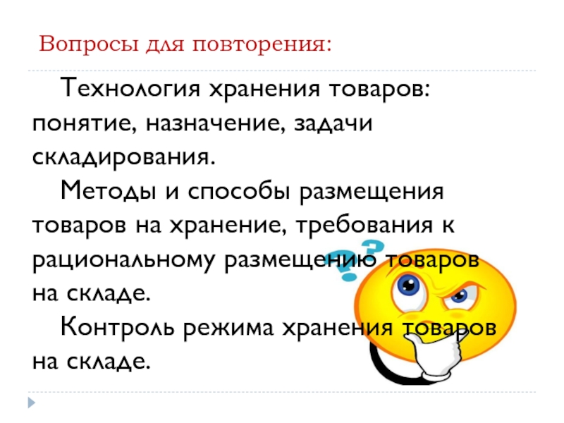 Слайд 11Технология хранения товаров: понятие, назначение, задачи складирования.