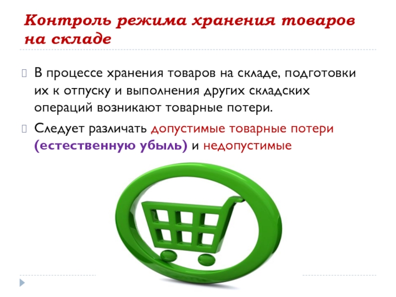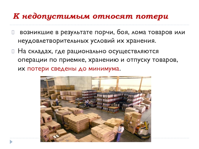 подготовки их к отпуску и выполнения других складских операций возникают товарные потери.