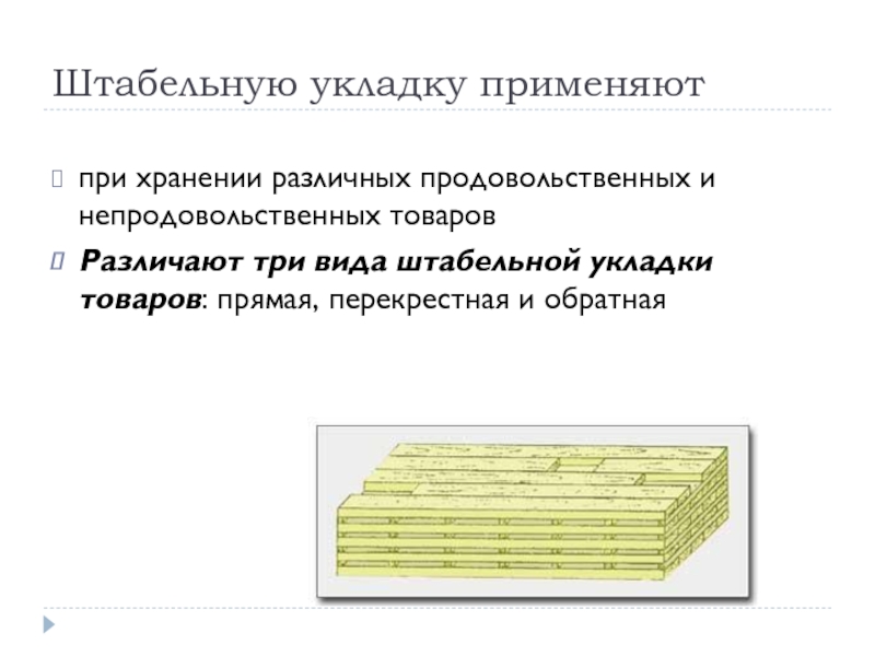 Слайд 20Штабельную укладку применяют