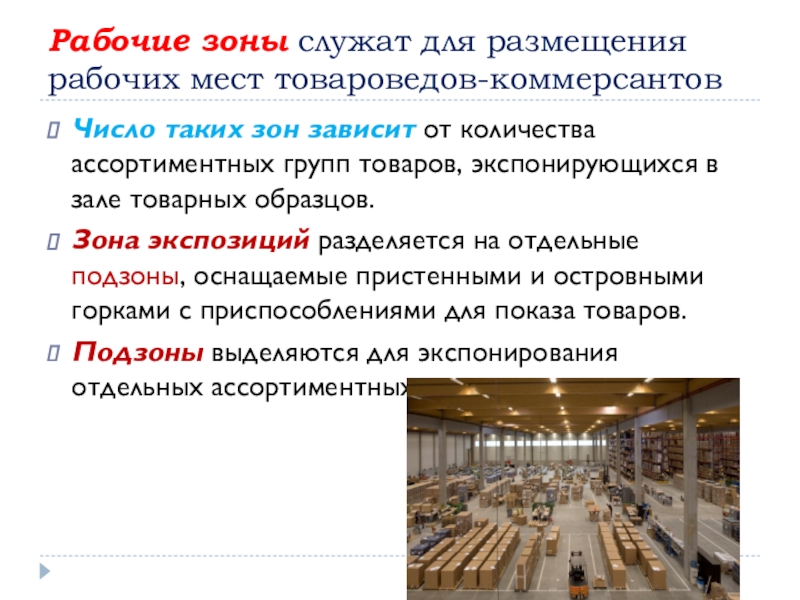 Слайд 29Рабочие зоны служат для размещения рабочих мест товароведов-коммерсантов