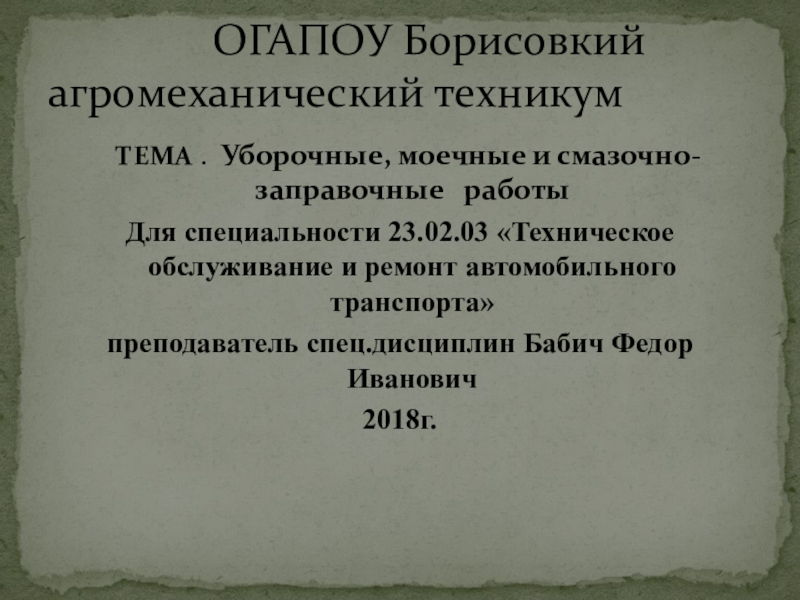 преподаватель спец.дисциплин Бабич Федор Иванович