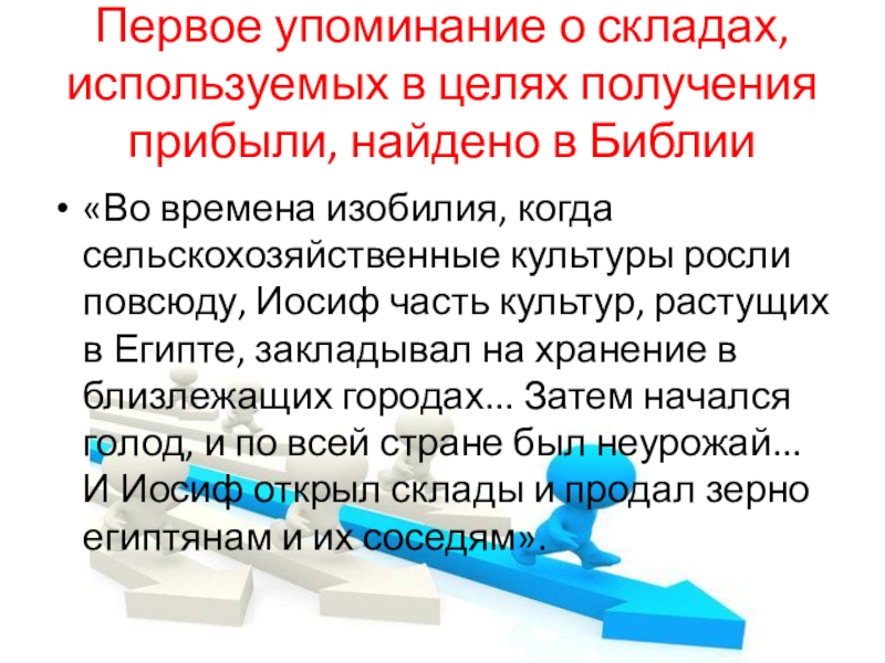 Первое упоминание о складах, используемых в целях получения прибыли, найдено в Библии