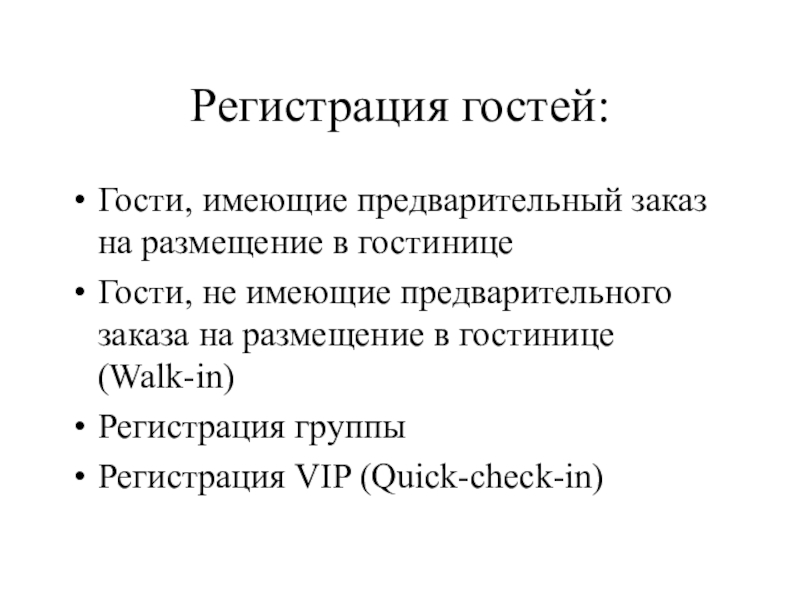 предварительного заказа на размещение в гостинице (Walk-in)