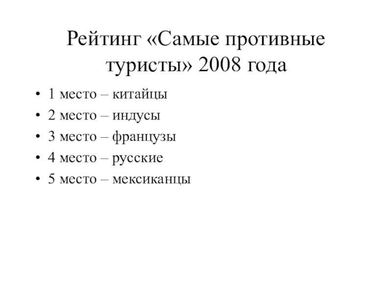 Слайд 13Рейтинг «Самые противные туристы» 2008 года