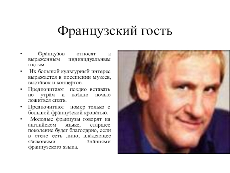 Французов относят к выраженным индивидуальным гостям.