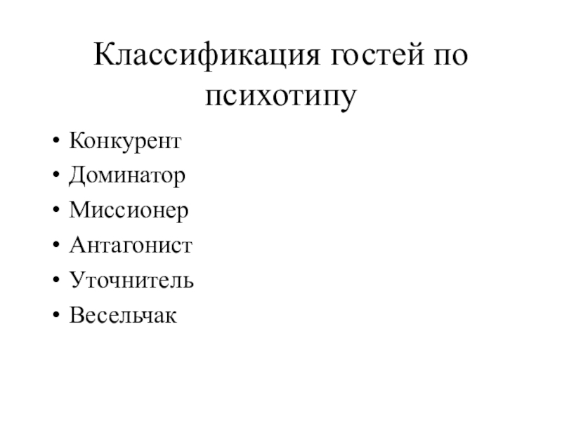 Слайд 14Классификация гостей по психотипу