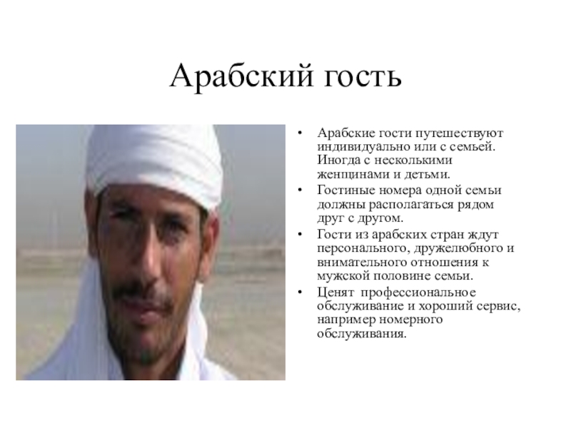 Гости из арабских стран ждут персонального, дружелюбного и внимательного отношения к мужской половине семьи.