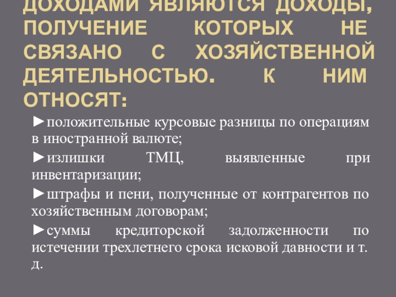 ►суммы кредиторской задолженности по истечении трехлетнего срока исковой давности и т.д.
