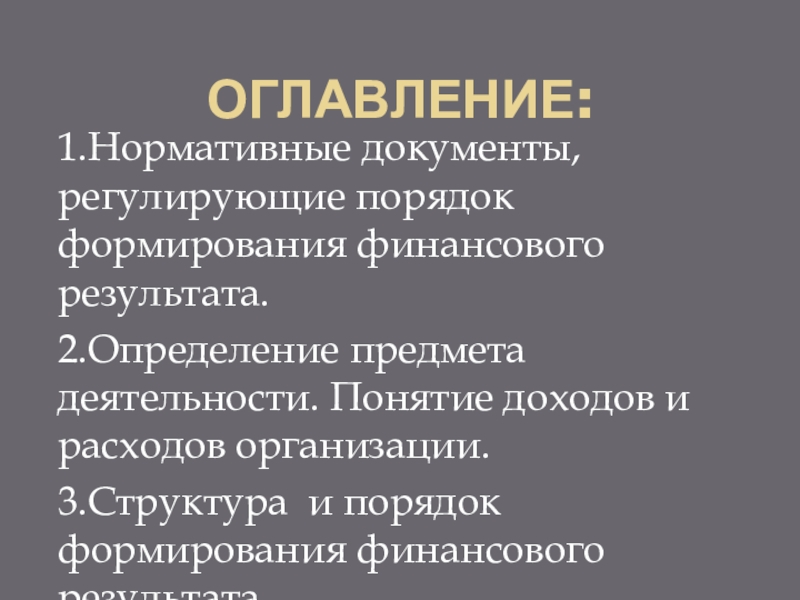 1.Нормативные документы, регулирующие порядок формирования финансового результата:
