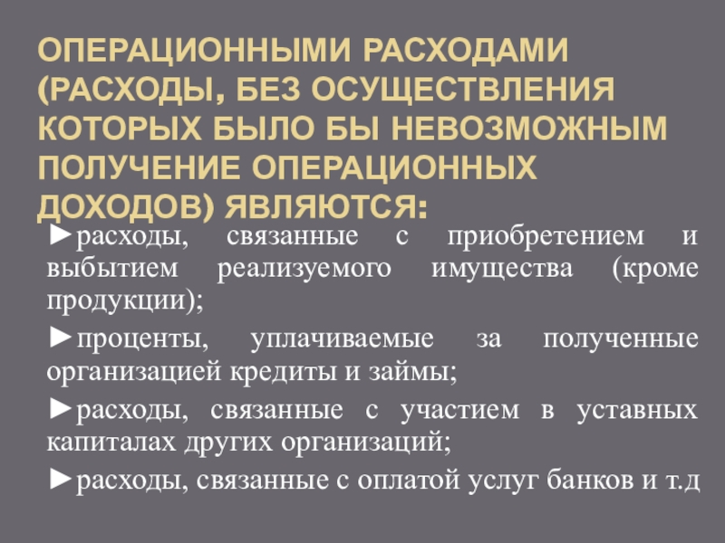 ►расходы, связанные с участием в уставных капиталах других организаций;