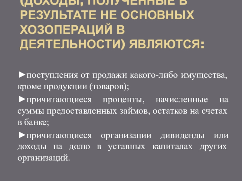 ►причитающиеся организации дивиденды или доходы на долю в уставных капиталах других организаций.
