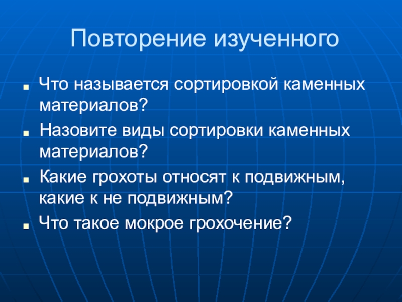 окончательной –сортировка применяется для окончательной очистки готовой продукции (щебня и гравия) перед погрузкой.