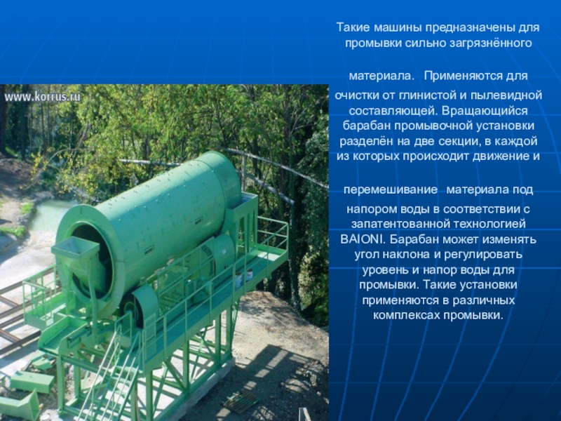 Слайд 41Такие машины предназначены для промывки сильно загрязнённого материала. Применяются для очистки