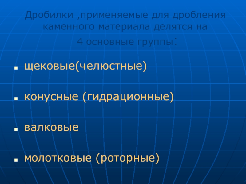 Дробилки ,применяемые для дробления каменного материала делятся на
